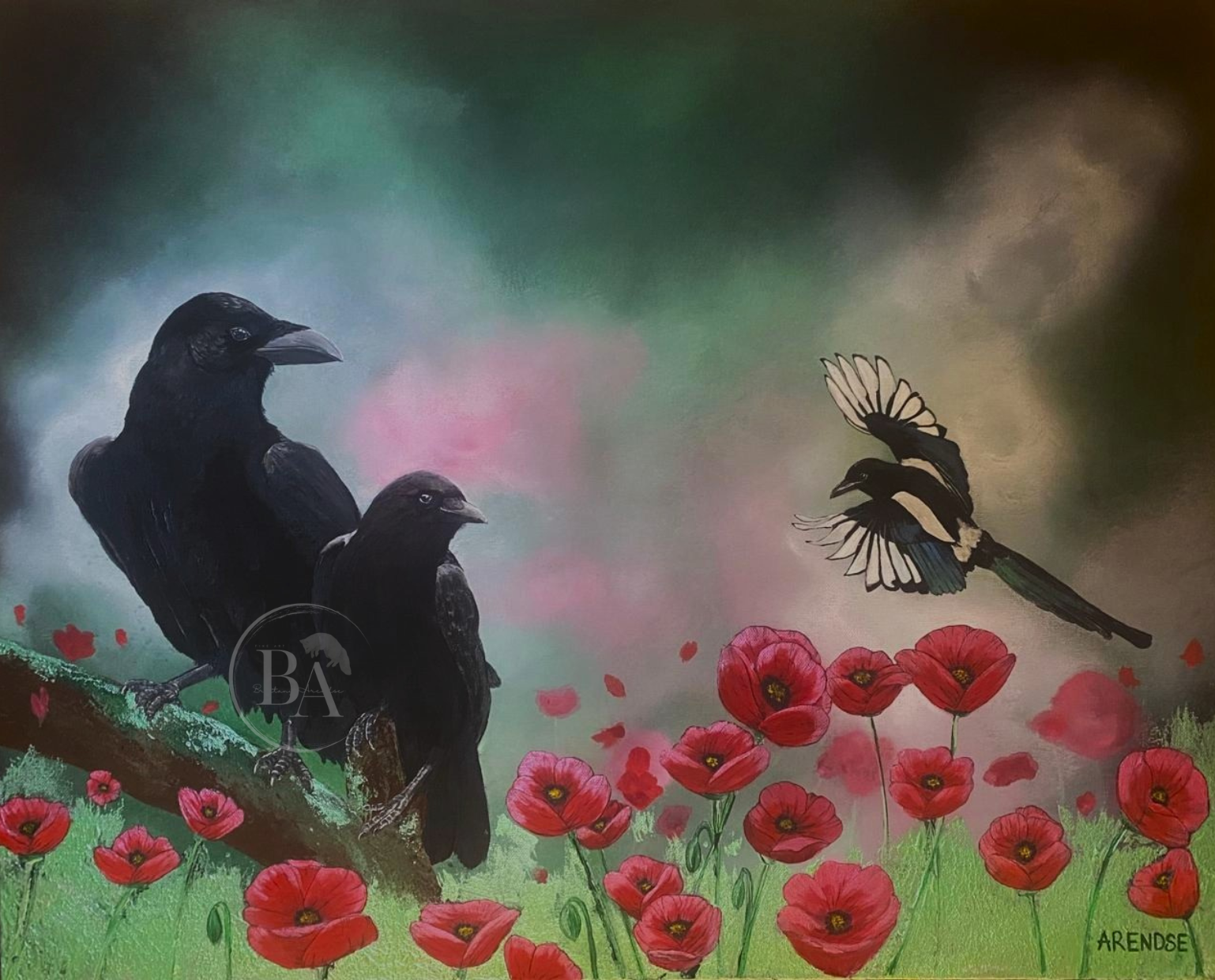 The poppies in this piece deepen that story. In classical mythology, the bright scarlet colour of the poppy can also signify a promise of resurrection after death—a symbol of renewal, of life returning even in the darkest seasons.
